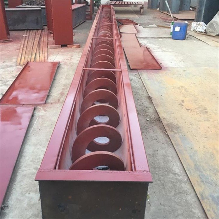 當螺旋軸轉動時,由于物料的重力及其與槽體壁所產生的摩擦力,使物料只能在葉片的推送下沿著輸送機的槽底向前移動,其情況好像不能旋轉的螺母沿著旋轉的螺桿作平移運動一樣。物料在中間軸承的運移,則是依靠后面前進著的物料的推力。所以,物料在輸送機中的運送,完全是一種滑移運動。為了使螺旋軸處于較為有利的受拉狀態,一般都將驅動裝置和卸料口安放在輸送機的同一端,而把進料口盡量放在另一端的尾部附近。 旋轉的螺旋葉片將物料推移而進行輸送,使物料不與螺旋輸送機葉片一起旋轉的力是物料自身重量和螺旋輸送機機殼對物料的摩擦阻力。葉片的面型根據輸送物料的不同有實體面型、帶式面型、葉片面型等型式。